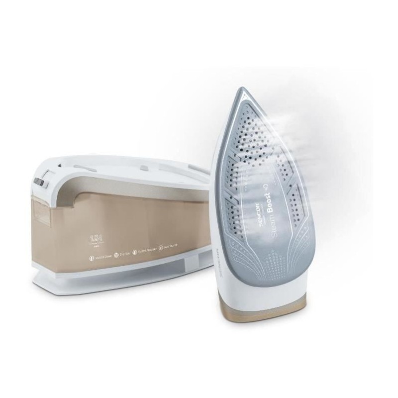 STATION DE VAPEUR Sencor SSI 0810VT - Le repassage avec la centrale vapeur est jusqu'a cinquante pour cent plus rapide que le repassage avec un fer a vapeur standard. Grâce a la grande quantité de vapeur, il est tres doux pour les tissus repassés. En l'absence de réservoir d'eau, l'unité manuelle est tres légere et confortable a utiliser. La centrale vapeur est prete a repasser dans les 35 secondes suivant sa mise en marche. Le voyant lumineux indique que le repassage est pret. L'option de repassage vertical permet de repasser des robes suspendues a un cintre. Affichage intelligent pour un réglage facile de l'intensité de la vapeur. - ECO - débit de vapeur suffisant pour un repassage standard avec une faible consommation d'énergie - NORMAL - débit de vapeur pour un repassage standard ou vertical Débit de vapeur 130 g/min Pression d'eau de 5,5 bars Capacité du réservoir d'eau 1,3 l Possibilité de remplir le réservoir d'eau pendant que l'appareil fonctionne sans l'éteindre Fonction d'arret automatique apres 10 minutes d'inactivité Le systeme anticalcaire empeche les dépôts de calcaire La technologie antigoutte empeche les gouttes indésirables sur le tissu repassé Un capteur automatique indique la nécessité de remplacer le filtre anticalcaire Contrôle variable de la température et de la vapeur pour un réglage optimal pour chaque type de tissu Design compact Pendant le processus de repassage, vous pouvez poser le fer soit sur le repose-fer, soit sur le repose-fer de la base Puissance absorbée 2 400 W Débit de vapeur : 130 g/min Jet de vapeur : 395 g/min Pression d'eau de 5,5 bars Semelle en céramique Temps de chauffe : 35 secondes Volume du réservoir d'eau : 1,5 l Dimensions du fer et de la base : 323 x 194 x 60 mm Poids avec la base : 2,85 kg Dimensions du fer : 275 x 124 x 131 mm Poids sans la base : 1,5 kg