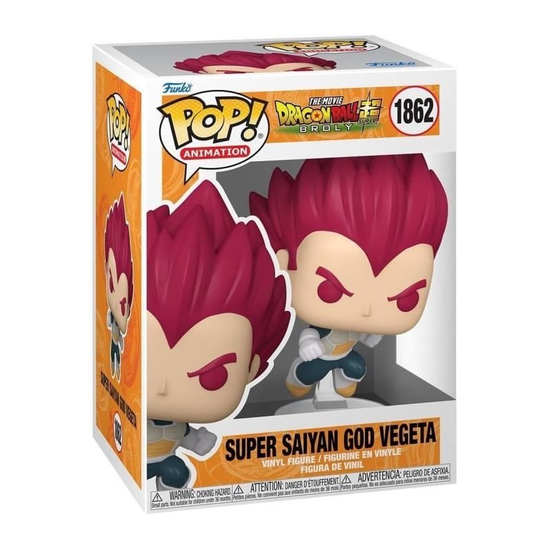 La figurine Funko Pop! de Dragon Ball Super présente Vegeta en Super Saiyan God, inspirée du film Dragon Ball Super: Broly. Avec ses cheveux rouges et son armure détaillée, cette piece en vinyle de 9 cm est parfaite pour les collectionneurs et les fans de la saga.