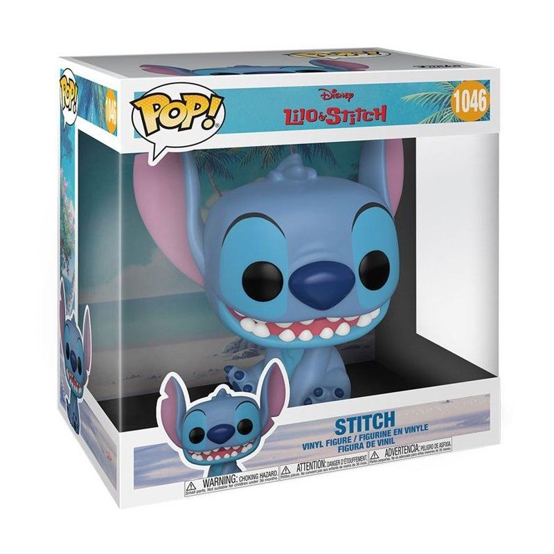 Figurine Funko Pop! géante de Stitch d'environ 25 cm, issue de l'univers Lilo & Stitch. Version grand format en vinyle sous licence officielle, livrée dans sa boîte d'origine. Piece premium parfaite pour une collection Disney.