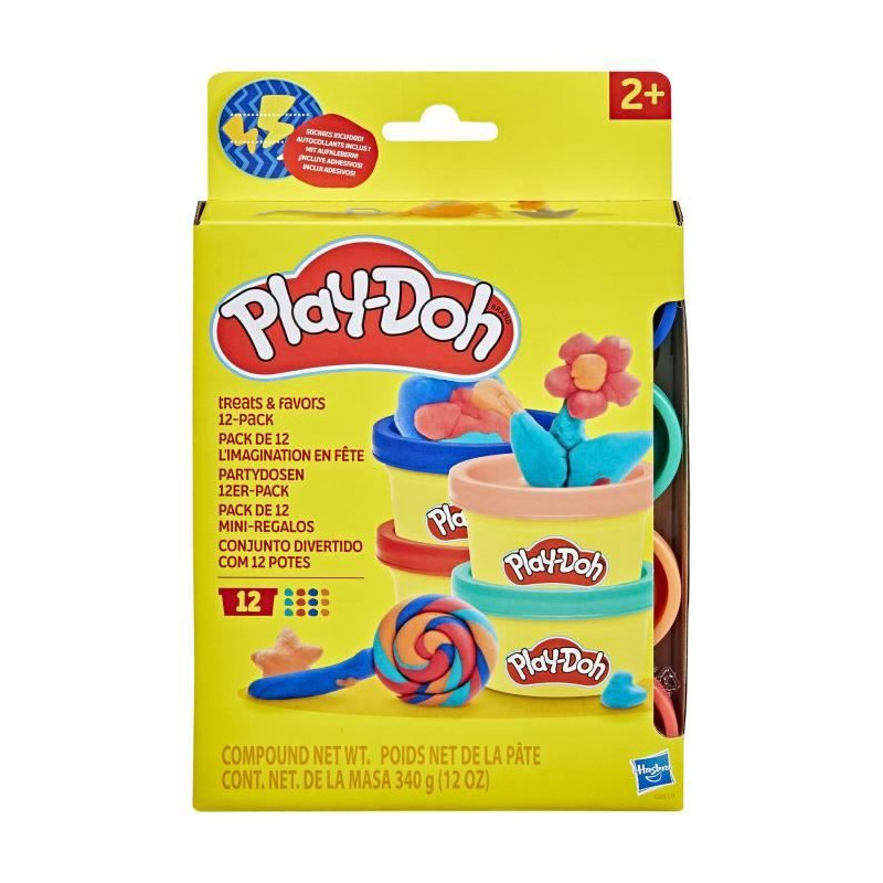 Play-Doh Pack de 12 L'imagination en fete, autocollants et pots de pâte a modeler de 28 g, petits cadeaux, loisirs créatifs p