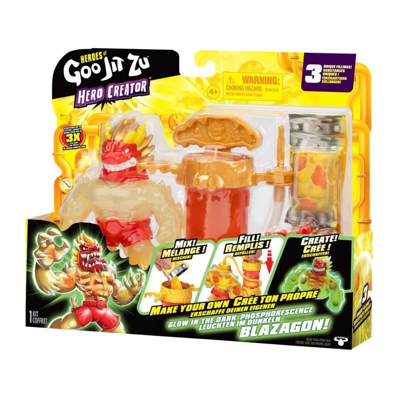 Découvrez la figurine Blazagon de HERoeS OF GOO JIT ZU ! Créez votre propre héros en le remplissant avec des matieres uniques. Étirez-le jusqu'a trois fois sa taille pour des aventures élastiques. Inclus : 1 figurine, 1 pompe et 3 ingrédients. Idéal pour les enfants a partir de 4 ans.