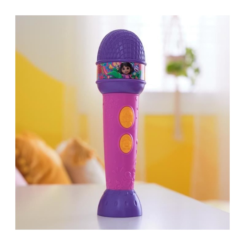 Un micro interactif pour jouer et chanter avec Dora et ses amis. 4 chansons et 9 mélodies. 2 piles LR03 fournies. Des 3 ans.