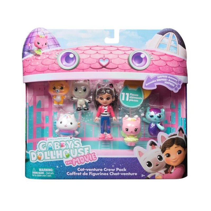 Un coffret Chat-venture de l'univers magique de Gabby et de ses adorables amis les chats. Coffret comprenant : une figurine de Gabby d'environ 10 cm, 5 figurines de chat, 4 accessoires et une boîte livraison surprise a découvrir. A partir de 3 ans.