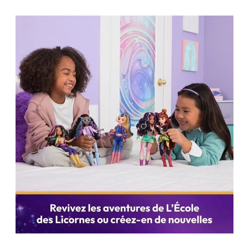 Une licorne issue de la série animée L'Ecole des Licornes. Accessoires amovibles inclus. Plusieurs modeles disponibles. Des 4 ans.