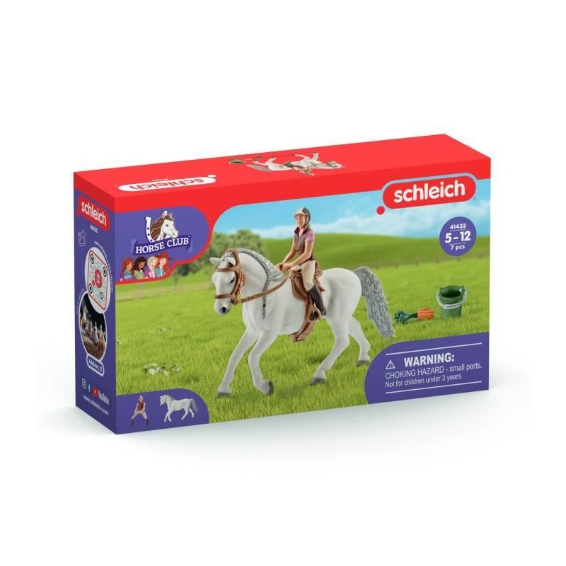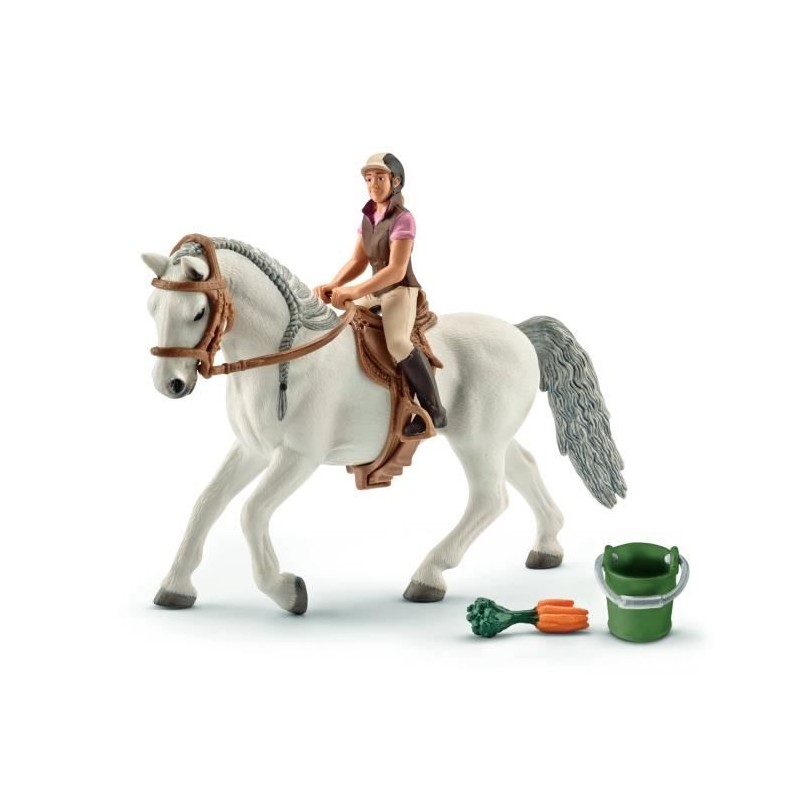 Figurine Cavaliere sur jument lipizzan - Cavalier et Jument Réalistes avec Seau et Selle, Schleich 41433 Horse club