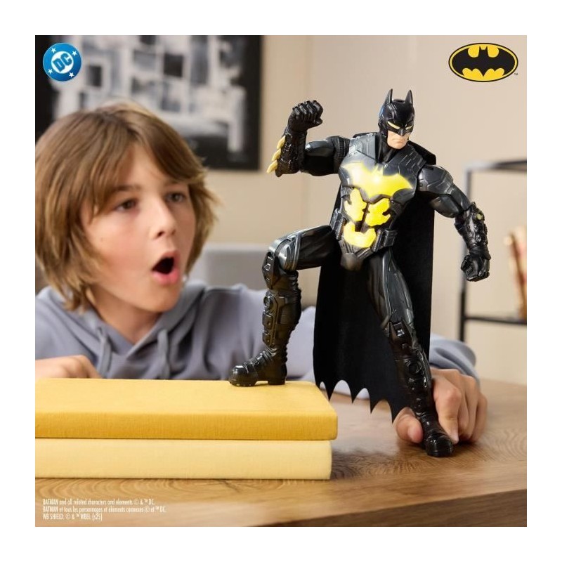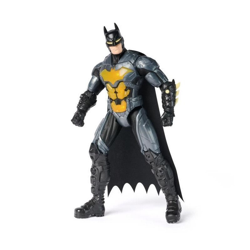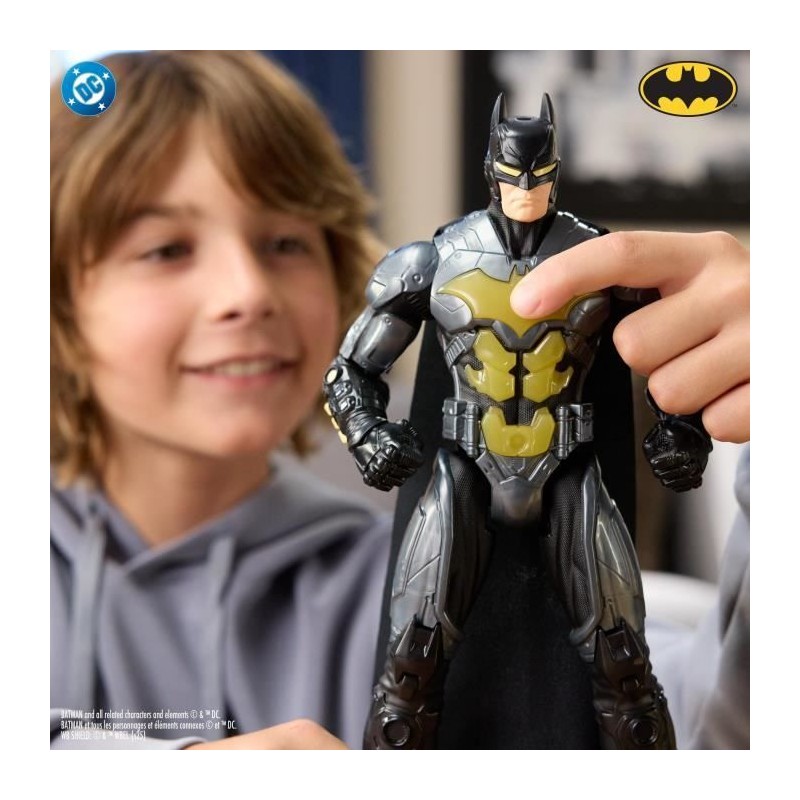 Une figurine de Batman interactive pour partir en mission et sauver Gotham du crime organisé. Appuie sur le torse de Batman pour déclencher les effets sonores et lumineux. Figurine avec 10 points d'articulation et plus de 20 sons et lumieres. Taille : 30 cm. Fonctionne avec 2 piles LR03 fournies. A partir de 4 ans.