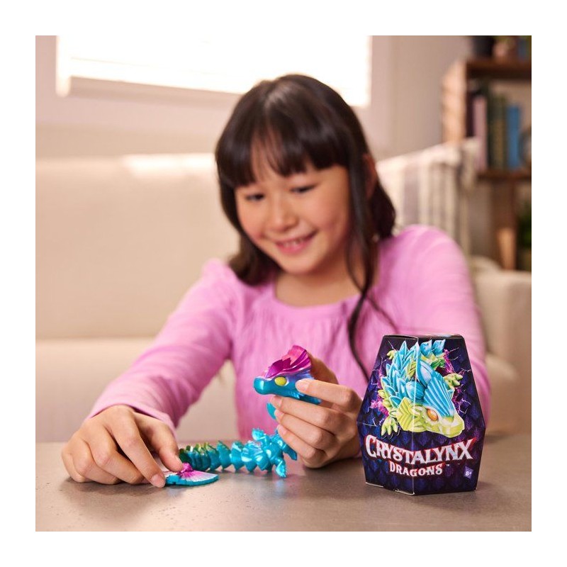 Des dragons hypnotisants a collectionner et personnaliser. Découvre un dragon articulé hypnotisant lorsque tu le manipules. Chaque articulation du dragon peut se détacher permettant de combiner plusieurs styles de dragon et se créer son propre Crystalynx. Taille du dragon : environ 23 cm. Plusieurs modeles disponibles. Livré en barquette de 6 pieces. Dimensions de la barquette : Hauteur 14 x Longueur 32,5 x Profondeur 20,3 cm. A partir de 8 ans.