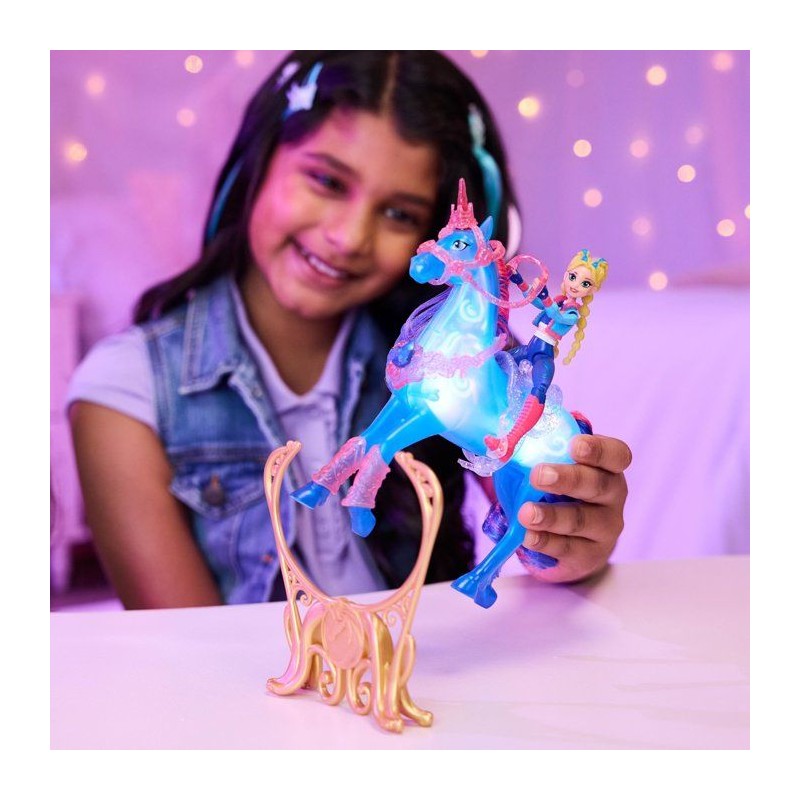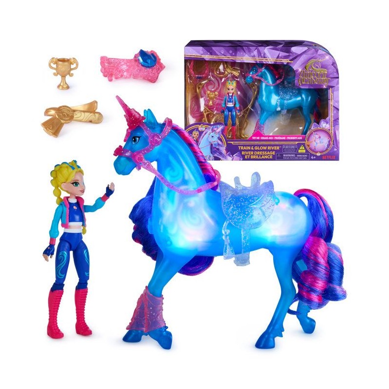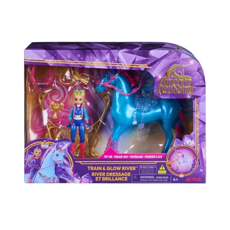 Retrouvez l'univers magique et féérique de la série animée L'Ecole des Licornes. Coffret de jeu comprenant une licorne River lumineuse et sa poupée articulée Isabel : entraîne River a chevaucher et a franchir l'obstacle pour la voir briller de mille feux. Appuie sur le bouton pour découvrir les pouvoirs magiques de l'eau de River se répandre dans son corps et la voir s'illuminer au fur et a mesure. 4 accessoires inclus : un obstacle, un flot, un trophée, et une bride. Fonctionne avec 3 piles LR44 fournies. Boîte ouverte avec fonction démonstration. A partir de 4 ans.