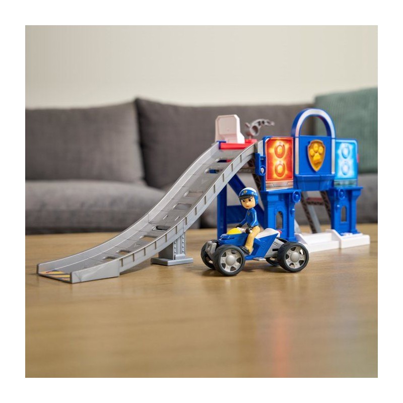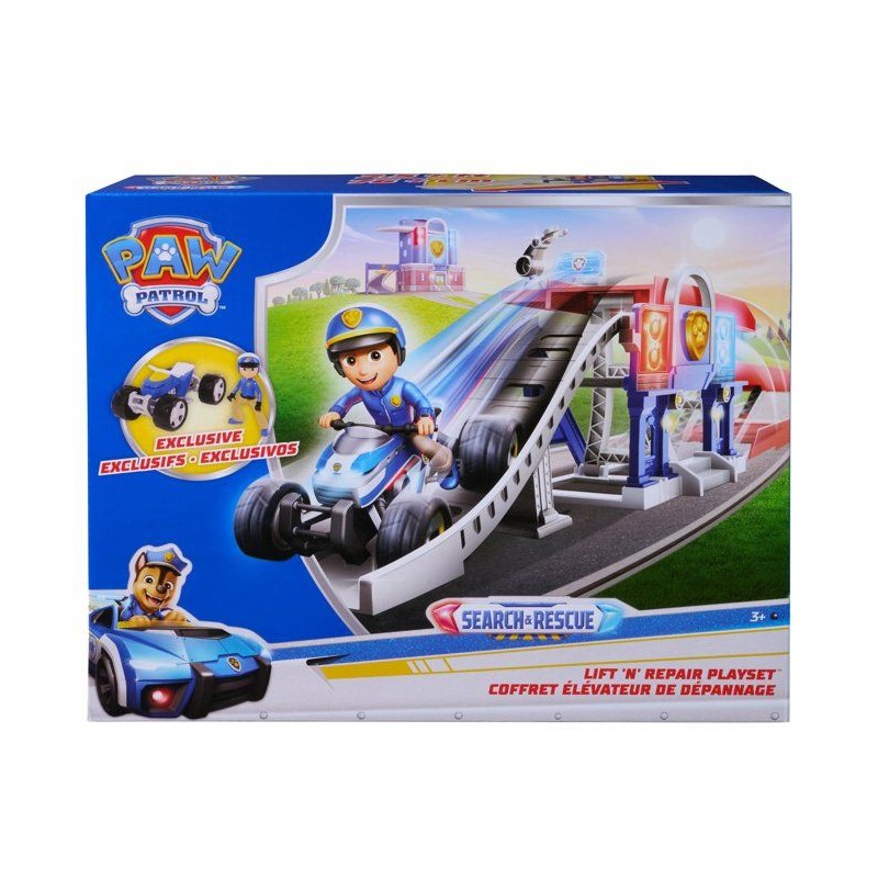 Un univers Pat' Patrouille Mission Détective pour des sauvetages extremes. Un véritable centre de réparations avec ascenseur et rampe de lancement pour les véhicules de la Pat' Patrouille. Utilise l'ascenseur pour accéder au centre de réparations puis lance le véhicule a toute vitesse. Inclut 1 quad et 1 figurine de Ryder en tenue exclusive Search & Rescue. Univers de jeu compatibles avec tous les véhicules + figurines de La Pat' Patrouille. Boîte fermée. A partir de 3 ans.