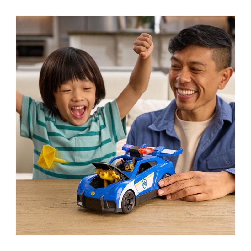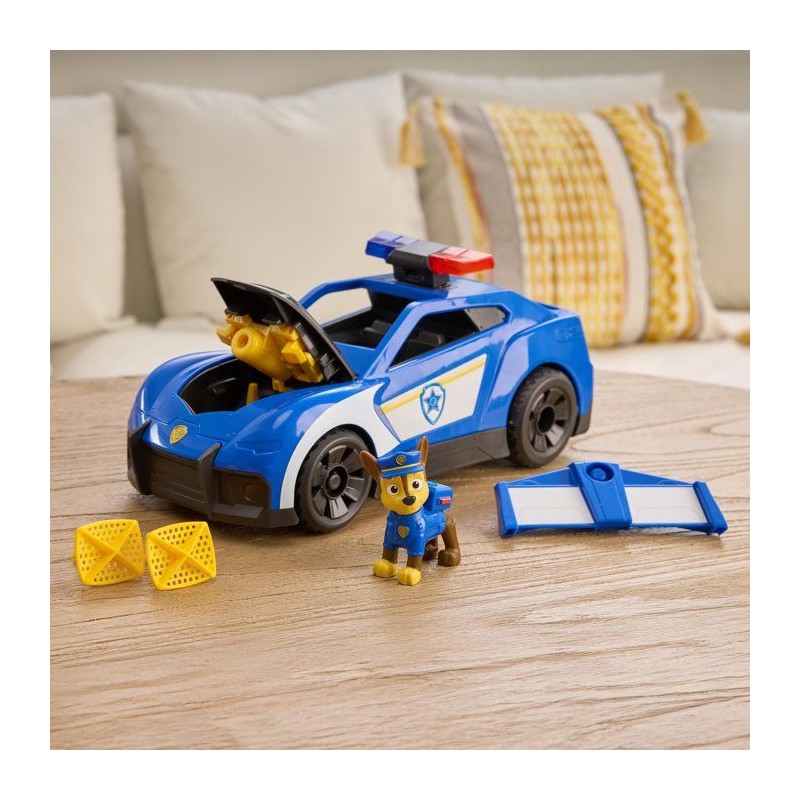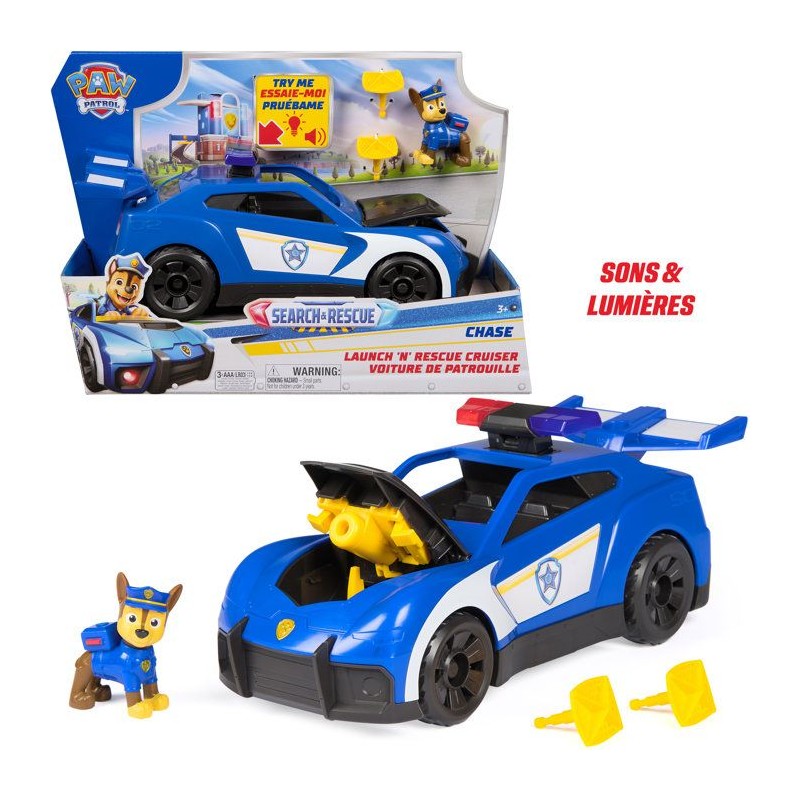 Une voiture de police interactive pour partir en Mission Détective avec la Pat' Patrouille. Un véhicule de Chase grand format avec sons et lumieres. Fais rouler la voiture de police et appuie sur le gyrophare pour déclencher les sons et lumieres et lancer le filet depuis le capot de la voiture. Le bécquet a l'arriere de la voiture peut se détacher et la cabine peut accueillir 2 figurines Pat' Patrouille (1 figurine de Chase fournie). Coffret de jeu comprenant 1 voiture de police, 1 figurine de Chase et 2 projectiles inclus. Fonctionne avec 3 piles LR03 fournies. Boîte ouverte avec fonction démonstration. A partir de 3 ans.