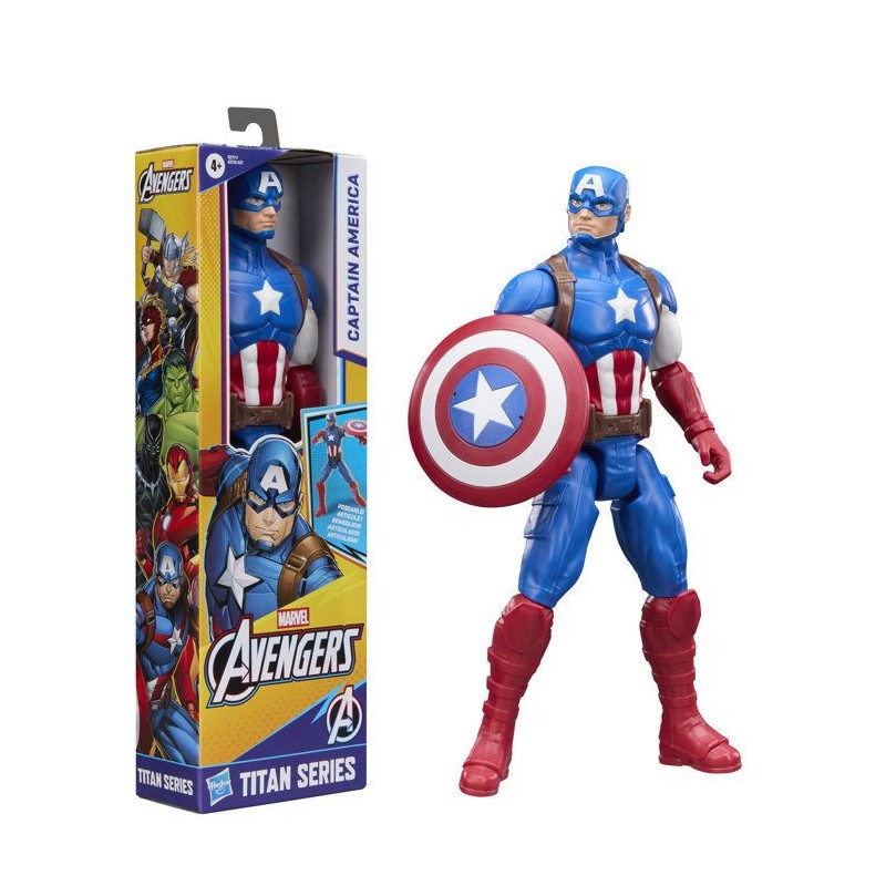 Figurine Captain America 30 cm, Titan Series, 11 points d'articulation, jouets de super-héros pour enfants, Marvel Avengers, des 4 ans