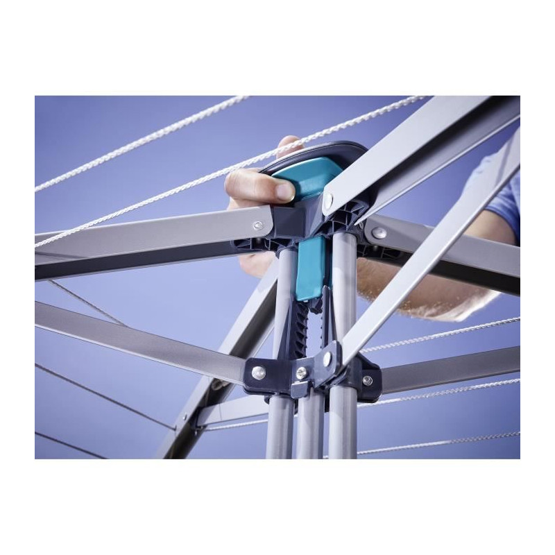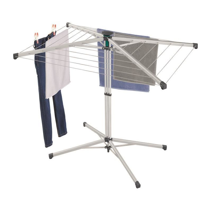 Séchoir LinoPop-Up › Longueur d'étendage : 14 m › Remplissage machine : 1 a 2 › Ouverture/Fermeture d'une seule main (mécanisme breveté) › Compact plié : idéal pour les petits espaces de vie, balcons, camping... › Dimension ouvert : H 111 x L 116 x l 83 cm › Dimension fermé : H 147 x L 12 cm › Léger : environ 3,5 kg ›