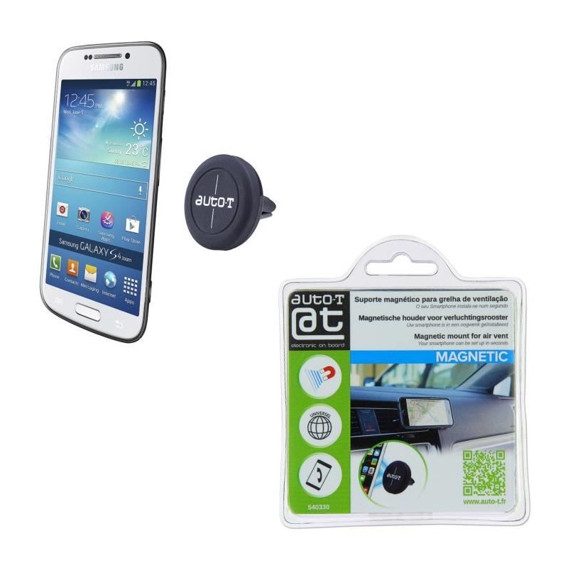 Le support magnétique compact pour smartphones AUTO T est spécialement conçu pour les grilles d'aérateur de votre véhicule. Il permet de sécuriser votre téléphone en un seul geste grâce a son aimant. Tres pratique pour une utilisation en mode GPS, il est livré avec des accessoires et est compatible avec le Kit main libre Bluetooth 540328.