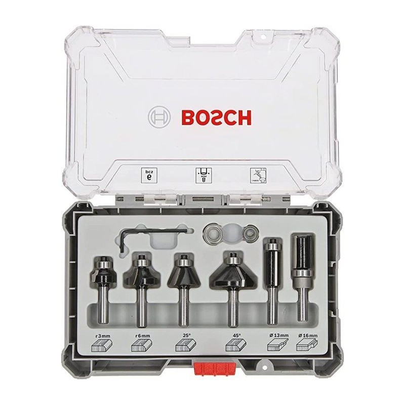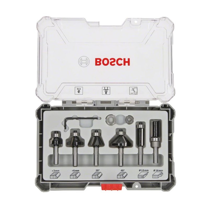 Le kit de fraises Bosch permet des coupes de précision pour une large palette d'applications. Parfait pour les menuisiers, les charpentiers, les décorateurs d'intérieur et les professionnels de la construction. Compatibilité assurée avec les défonceuses portatives les plus courantes. Les fraises sont conçues pour etre utilisées dans du bois tendre, du bois dur et du bois composite. Les aretes de coupe en carbure