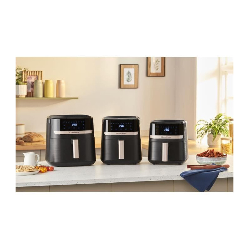 Découvrez la friteuse a air SatisFry de RUSSELL HOBBS, avec une capacité de 8,3L et une puissance de 1800W. Profitez de 9 programmes de cuisson pour préparer vos plats préférés de maniere saine et rapide. Sa température maximale atteint 200°C, idéale pour des résultats croustillants.
