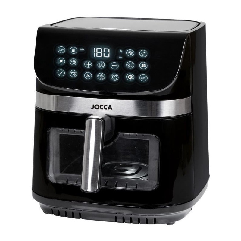 Découvrez la friteuse a air JOCCA 2352, avec une capacité de 9L et des dimensions de 30,5x38,5x35 cm. Profitez d'une cuisson saine sans graisse grâce a ses 10 programmes prédéfinis, son écran tactile LED et son panier antiadhésif. Idéale pour frire, cuire, griller et décongeler vos aliments rapidement et facilement.