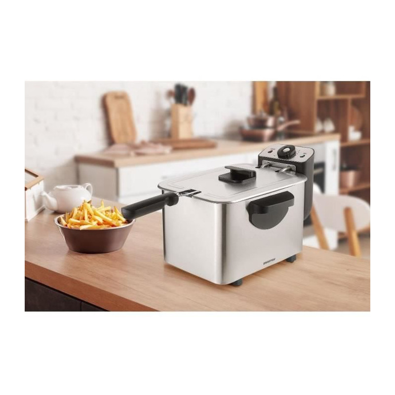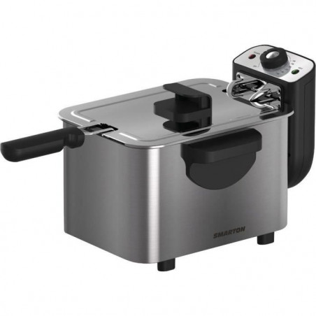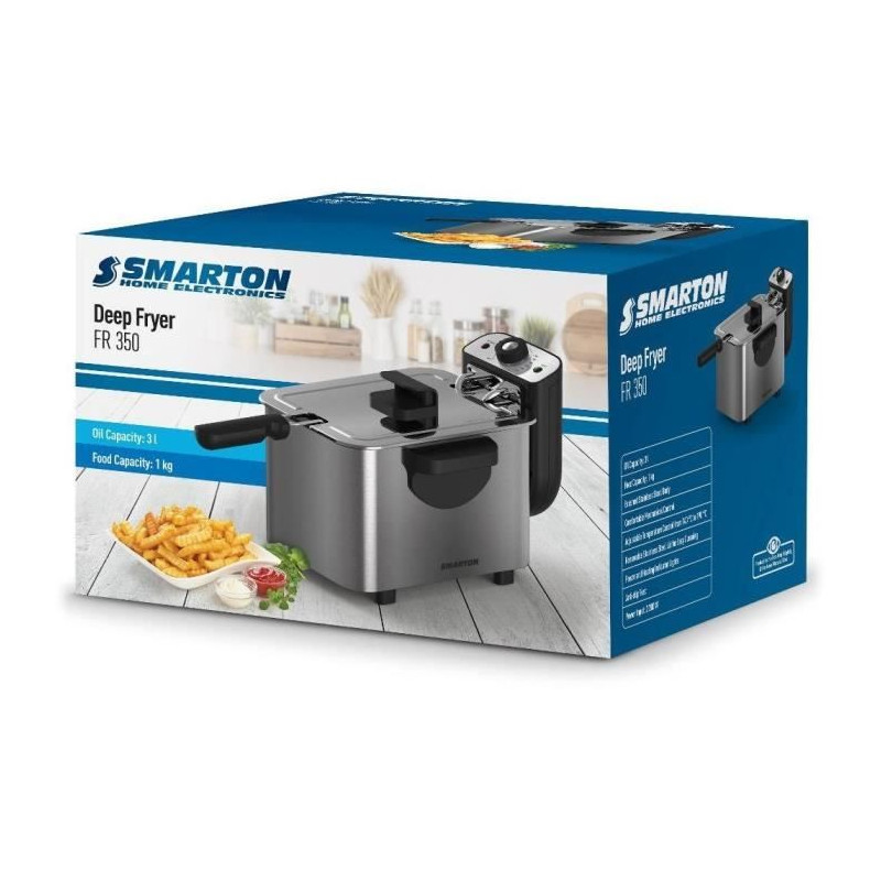 Découvrez la friteuse Smarton FR 350, avec une capacité d'huile de 3L et une contenance alimentaire de 1kg. Son corps en acier inoxydable brossé et son contrôle de température réglable de 140°C a 190°C garantissent une utilisation facile et efficace. Profitez de ses pieds antidérapants et de son couvercle amovible pour un nettoyage simplifié.