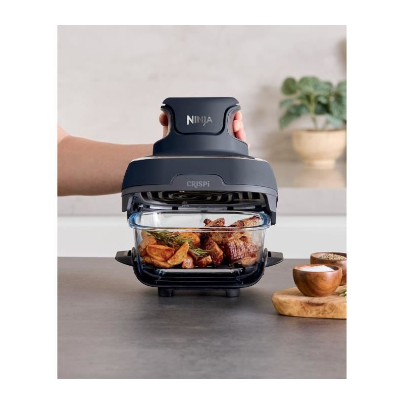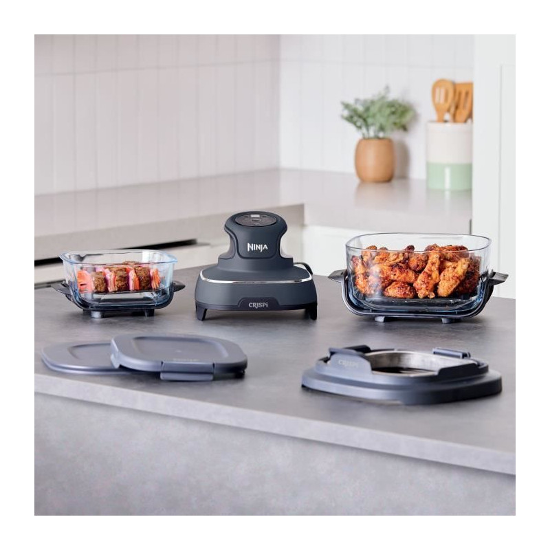Découvrez la friteuse sans huile Ninja Crispi(TM) : un appareil 4-en-1 puissant de 1700 W. Avec ses récipients en verre de 1,4 L et 3,8 L, il permet de cuisiner, réchauffer, griller ou frire a l'air. Compact et portable, il s'adapte a toutes les cuisines pour des repas sains et savoureux.