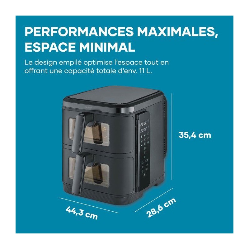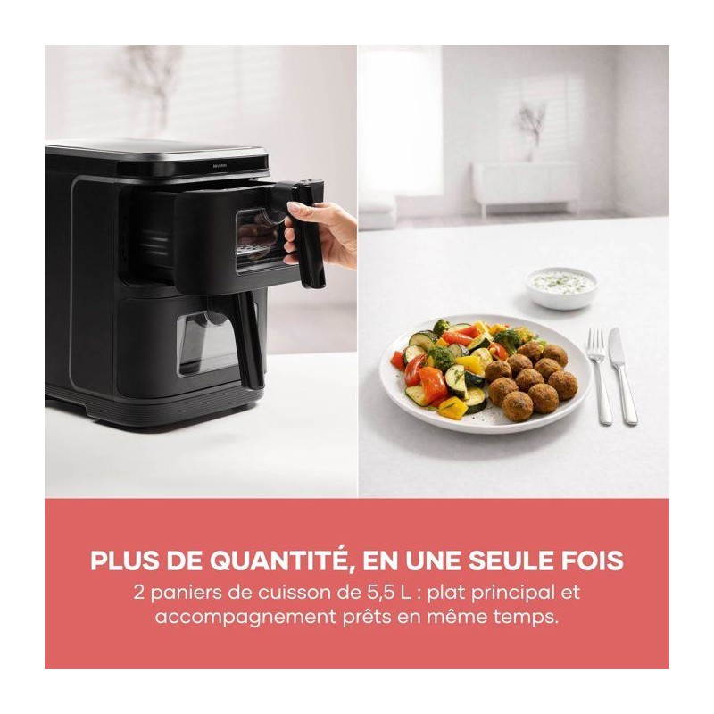 Friteuse sans huile - SEVERIN - AirFryer FR9598 - Capacité 11 L - Double cuve - 9 programmes - Écran tactile - 2600 W