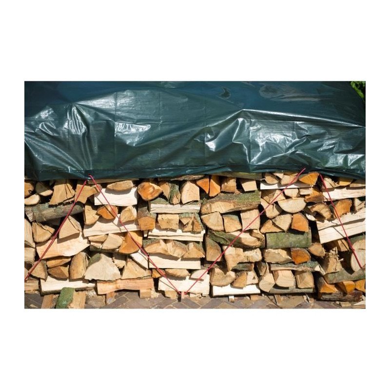 NATURE Bâche pour tas de bois - HDPE tissé, oeillet, verte - 90 g/m² - 5 x 6 m