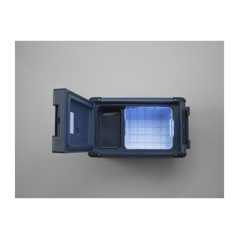 Ce réfrigérateur électrique fiable vous permet d'apporter davantage de nourriture et de boissons la où vous le souhaitez. Son design robuste a été étudié pour résister a des conditions météorologiques extremes. Doté d'une application mobile (Dometic Mobile Cooling) pour contrôler la température intérieure, de poignées pliables et ergonomiques pour le transport et d'un écran numérique, ce petit réfrigérateur électrique est parfait pour votre prochain week-end d'aventure. Accueille jusqu'a 42 canettes de 33 cl ou 4 bouteilles de 1,5 L. La température peut etre réglée entre +20 °C et -22 °C. Compresseur puissant et peu gourmand en énergie avec moteur a vitesse variable. Se branche en 12/24 V DC (prise allume cigare) ou en 100-240 V AC (câbles pour Europe et Royaume Uni). Design durable avec coins renforcés, charnieres en acier inoxydable et couvercle amovible robuste. Affichage numérique pour un paramétrage pratique de la température avec fonction d'intensité de l'affichage et port USB. Contrôlez votre glaciere tout simplement depuis votre smartphone. Poignées pliables et ergonomiques. Protection de la batterie du véhicule d'une décharge excessive. Intérieur compartimenté et doté d'un panier amovible pour une organisation optimale. Eclairage intérieur a LED. Panier métallique amovible. Bouchon au fond de la glaciere permettant d'évacuer l'eau de dégivrage ou de nettoyage.