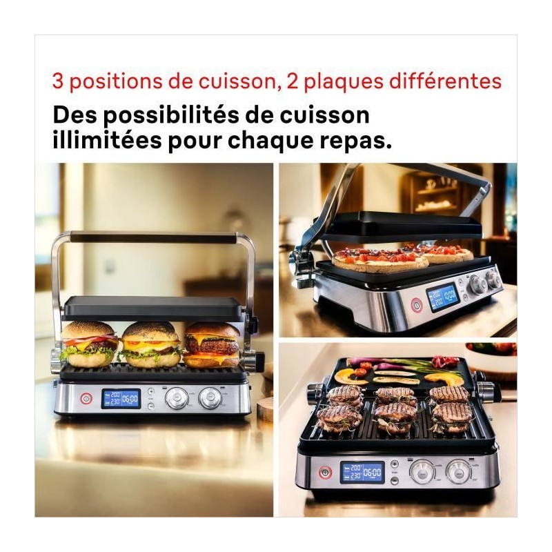 Grill multifonctions BRAUN Multi Grill 9 : Simplifiez vos repas avec le grill multifonctions BRAUN Multi Grill 9. Avec ses éléments chauffants intégrés et ses 3 positions de chauffe, vous pouvez cuisiner pour jusqu'a 8 personnes en une seule fois. Les thermostats électroniques indépendants assurent une cuisson précise. Avec une puissance de 2000 W et un bac a jus intégré, ce grill est parfait pour des repas délicieux et faciles a préparer. Disponible en noir et acier, il s'adapte a toutes les cuisines.