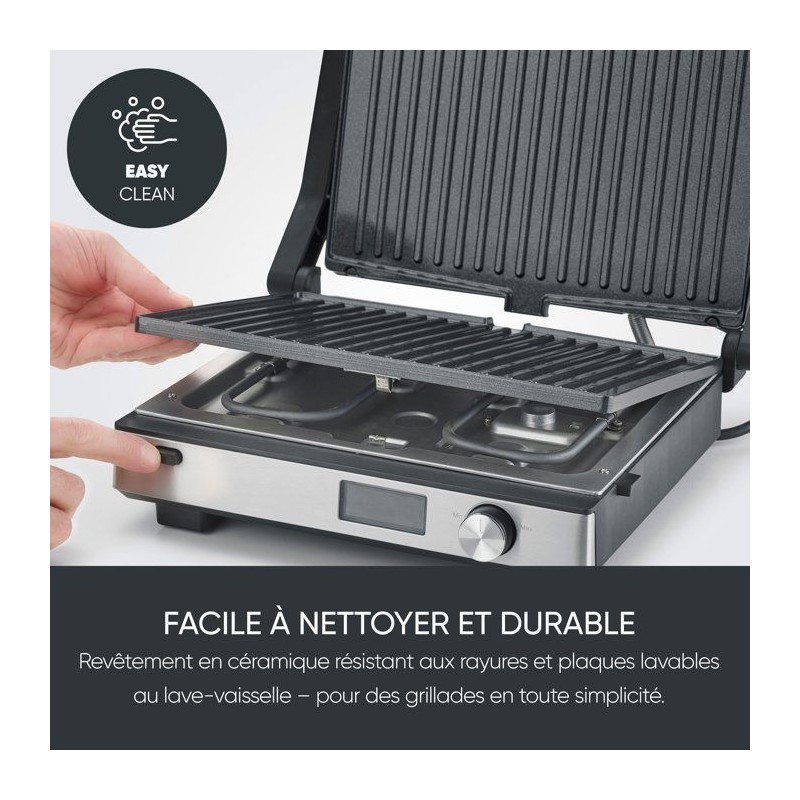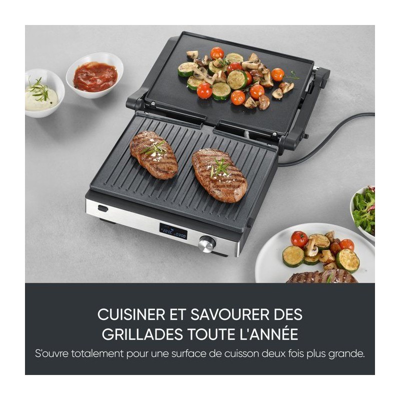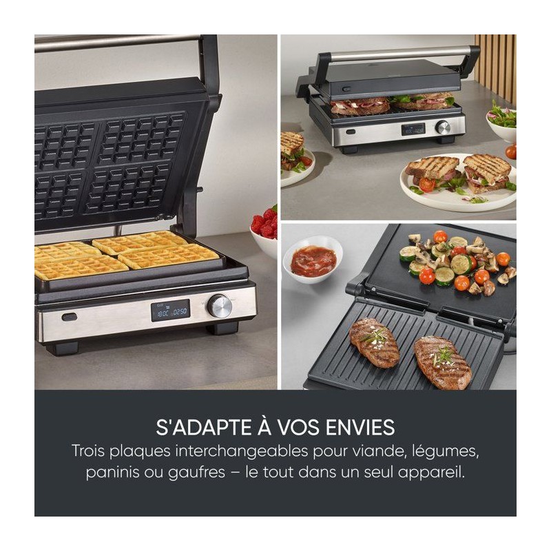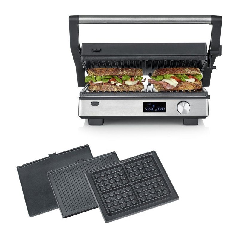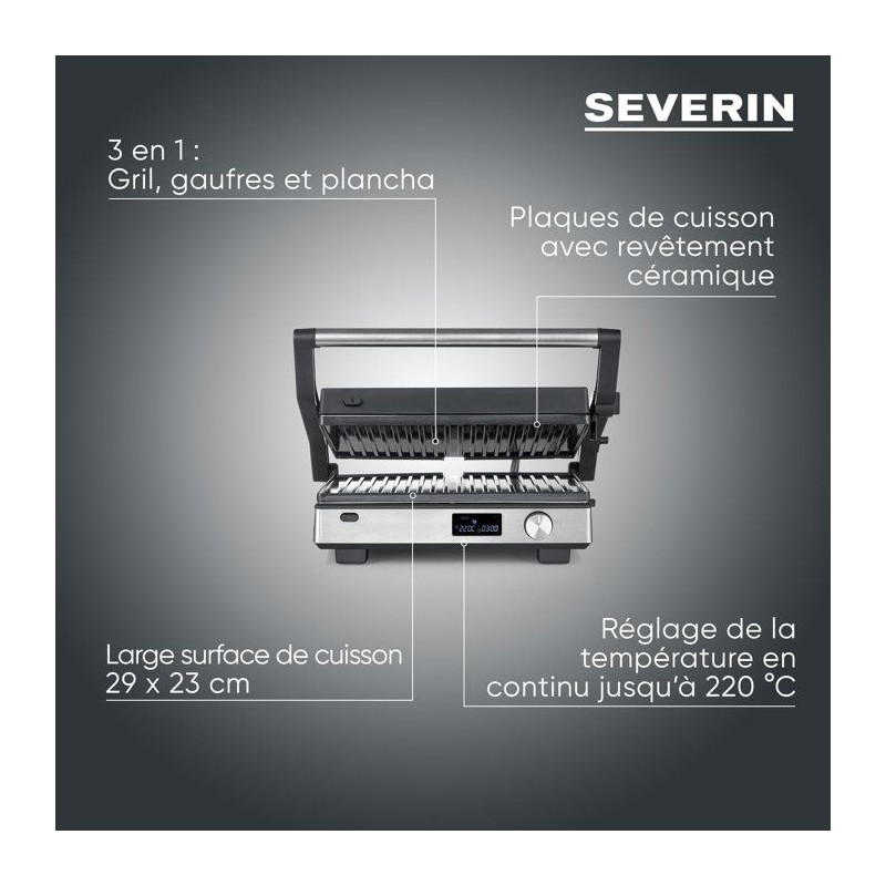 Gril multifonction 3-en-1 - SEVERIN - KG 2380 - 2000 W - 3 jeux de plaques - Ecran LED - Noir / Inox