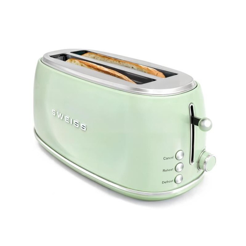 Grille-pain vintage - SWEISS - GRV7 - 2 fentes - 1500 W - Vert