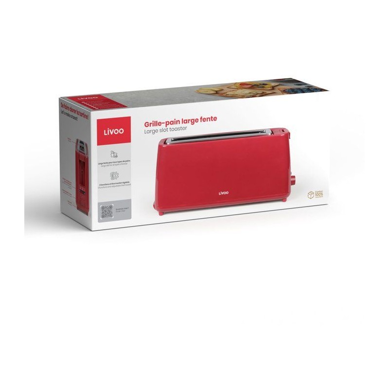 Grille-pain fente longue - LIVOO - DOD168RC - 900 W - Thermostat réglable : 7 niveaux - Rouge
