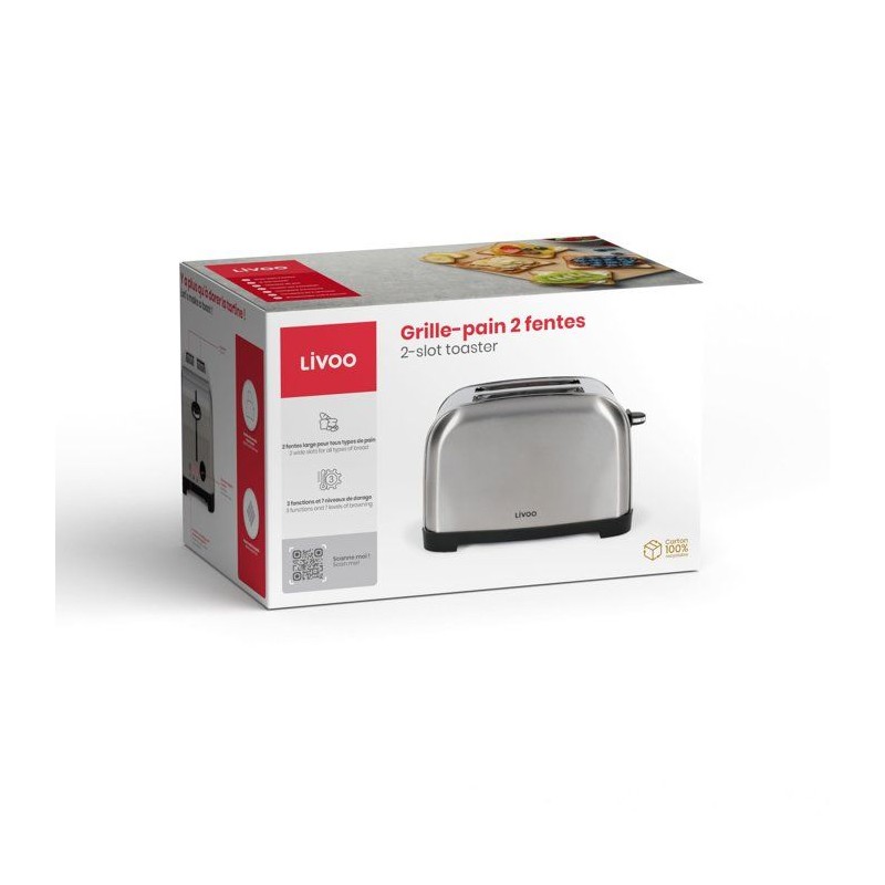 Grille-pain 2 fentes - LIVOO - DOD196 - 850 W - Thermostat réglable : 7 niveaux - Acier inoxydable