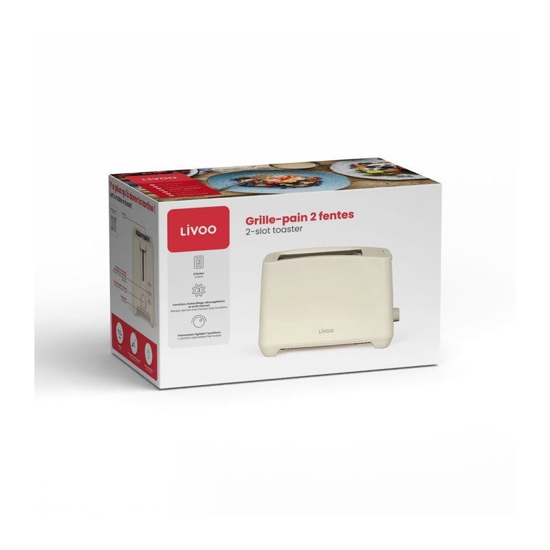 Grille-pain 2 fentes - LIVOO - DOD162C - 750 W - Thermostat réglable : 7 niveaux - Blanc cassé