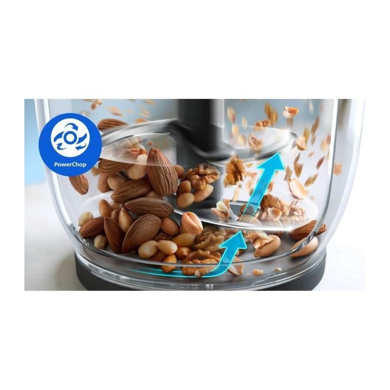 Une puissante capacité de hachage a votre disposition. Technologie PowerChop, pour un excellent hachage Préparez les dips de votre choix dans le bol de 2 l Deux vitesses, double précision ! Ne glisse pas. Nettoyage facile Un unique outil, des possibilités infinies ! Un hachage rapide grâce aux 4 lames en inox Créez votre propre pâte d'oléagineux maison.