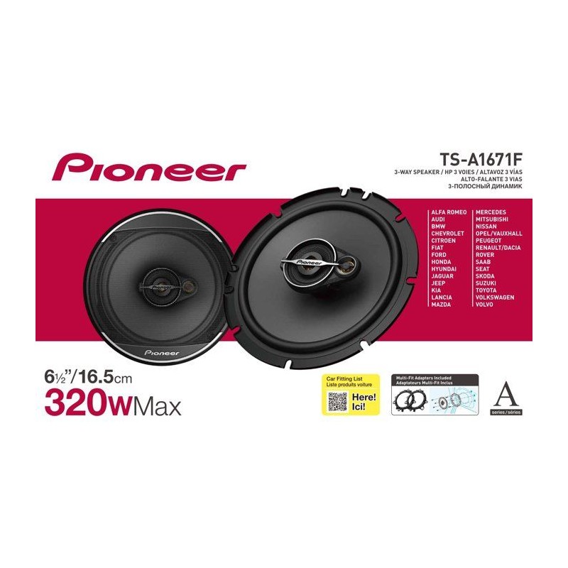 Haut-parleurs voiture coaxiaux 3 voies - PIONEER - TS-A1671F - 16,5 cm - Etrier de fixation - 320 W max