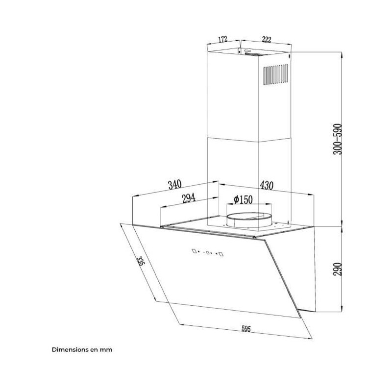 Hotte décorative inclinée - CONTINENTAL EDISON - CEHDI60B - A +++ - L60 cm - Noir