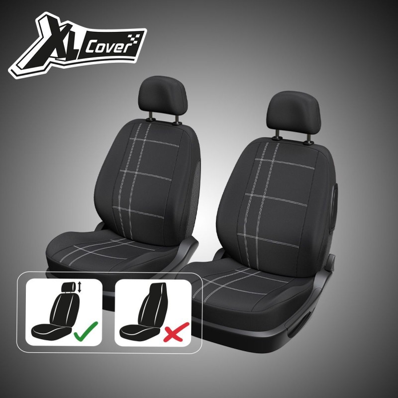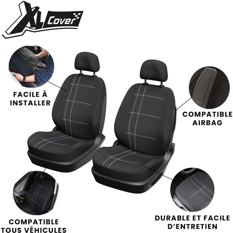 Lot de 2 housses auto avant - XLCOVER - Compatible Airbags - Noir - Housses pour sieges et appuis-tete