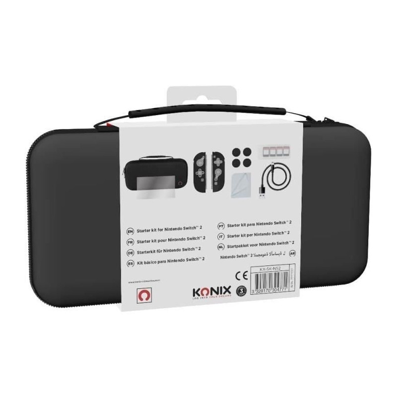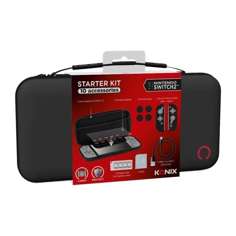 Pack d'accessoires gaming - KONIX - Nintendo Switch 2 - Housse - 4 appuie-pouces - Verre trempé - Boîtier 9 jeux - Écouteurs