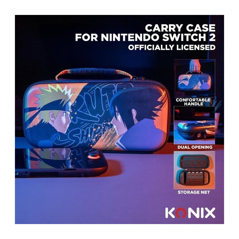 Housse de protection - Nintendo Switch 2 - Konix - Naruto Shippuden - Rangement accessoires - Naruto et Sasuke - Noir et orange