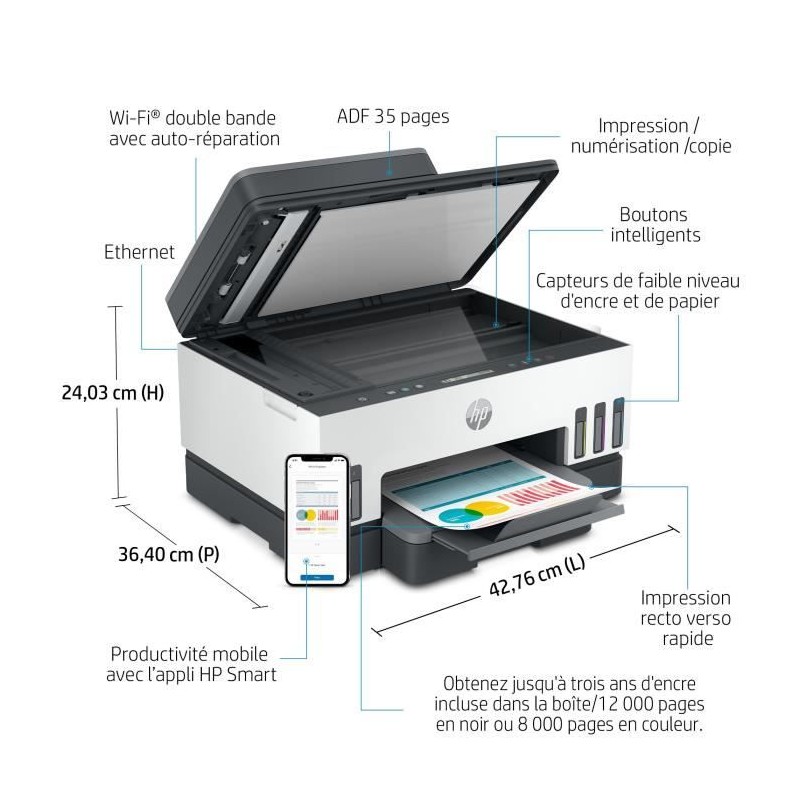 Imprimante Tout-en-un HP Smart Tank 7305 - Jet d'encre thermique - Couleur - A réservoir d'encre