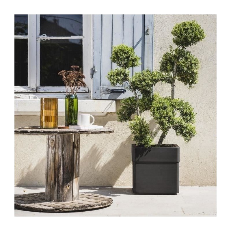 Avec son décor mat strié, le bac a fleurs carré Carel structure et embellit les terrasses et les balcons. Des roulettes sont incluses sous le bac, pour le déplacer sans effort. Grâce au réservoir d'eau avec bouchon, le bac a fleurs Carel s'utilise en intérieur avec une zone de rétention d'eau ou en extérieur avec une évacuation complete de l'eau.