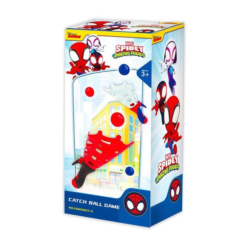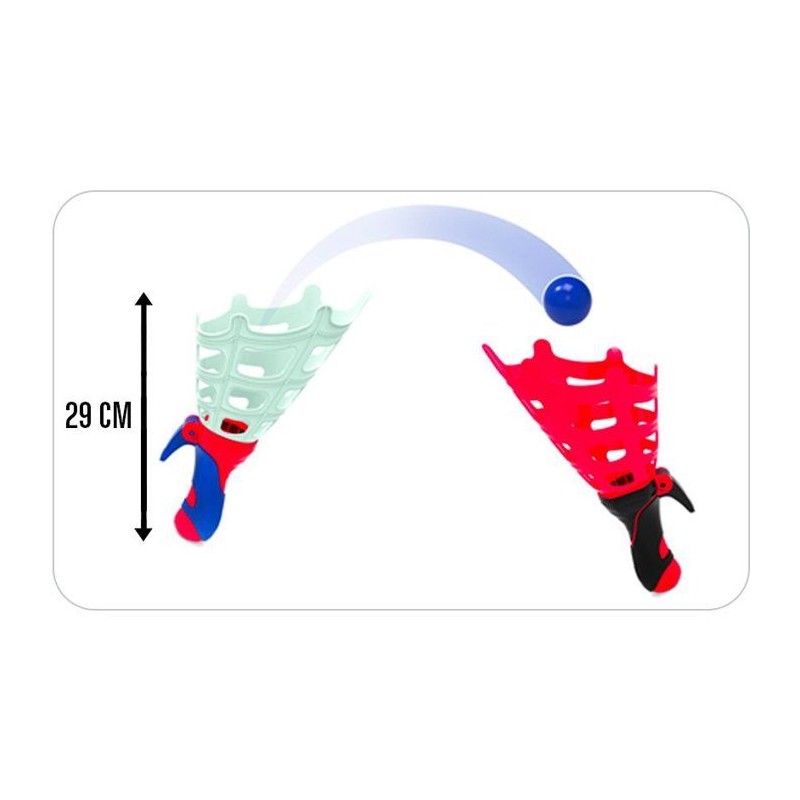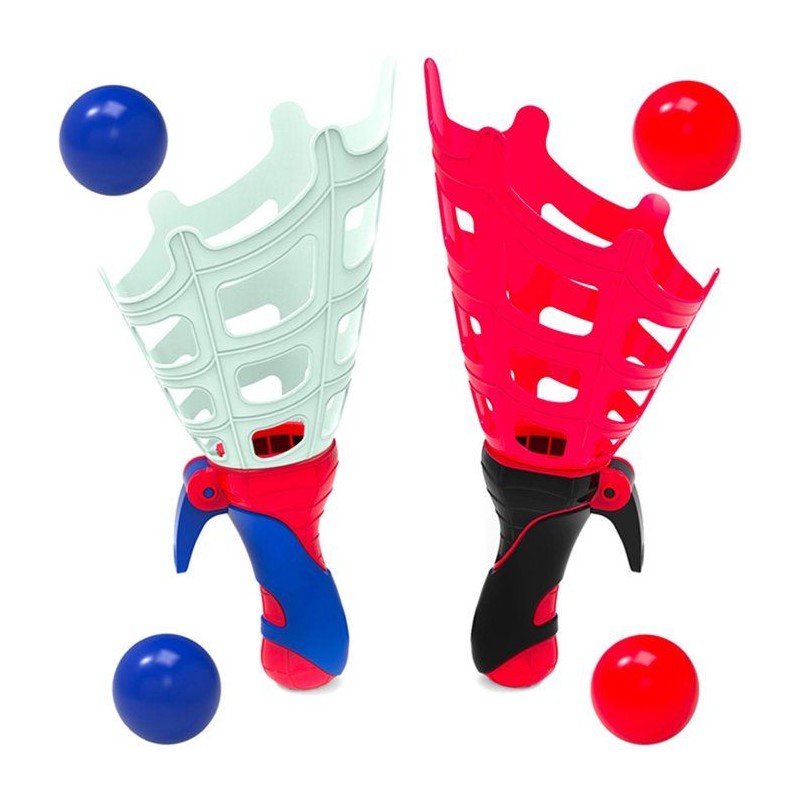 Jeu dynamique Spidey comprenant 2 lanceurs et 4 balles. Favorise réflexes, coordination et anticipation. Panier large pour faciliter la réception. Poignées ergonomiques adaptées aux enfants comme aux adultes, parfait pour partager un moment ludique en intérieur ou extérieur.