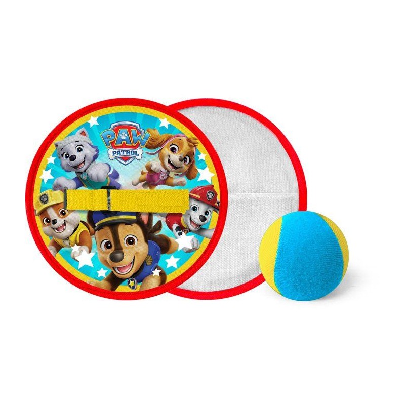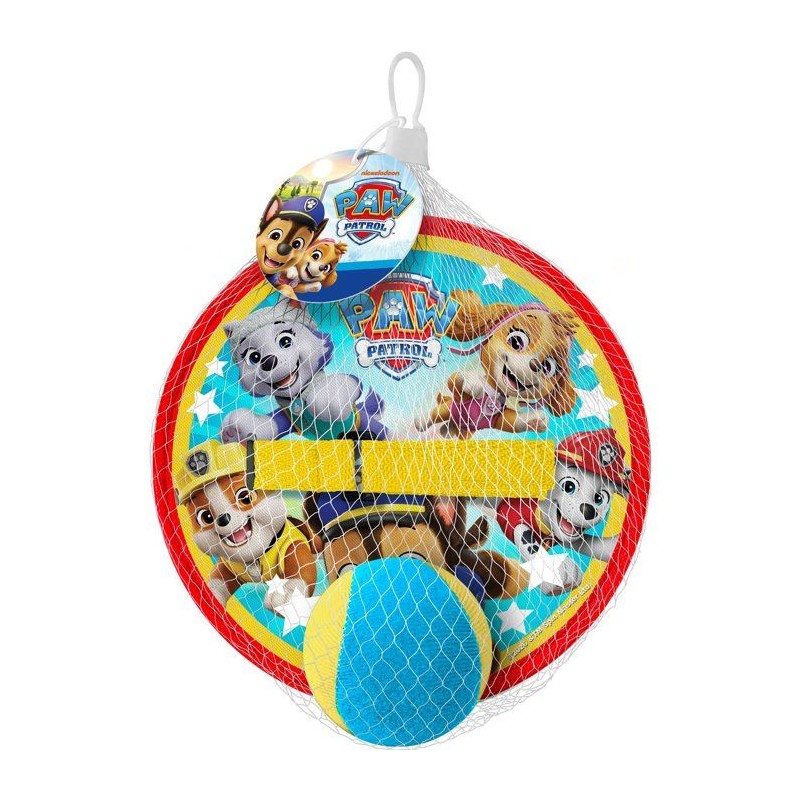 Set Pat'Patrouille avec 2 raquettes scratch et balle adhérente. Léger, simple a utiliser et parfait pour débuter le lancer-attraper. Favorise motricité globale, précision et jeu actif.