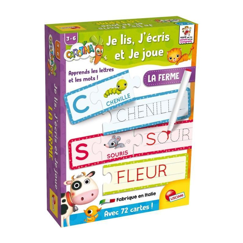 Je lis, j'écris et je joue avec la ferme - Carotina - jeu d'apprentissage - 72 cartes effaçables - LISCIANI