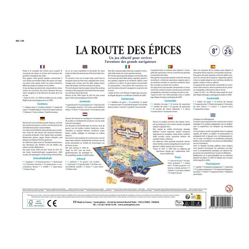 Affréter des bateaux pour partir a la conquete de nouveaux territoires et y acquérir le monopole des épices, tel était l'objectif des différentes Compagnies des Indes aux XVIIe et XVIIIe siecles. Revivez cette aventure en apprenant a reconnaître l'odeur des épices pour pouvoir les acheter a bon compte, puis revendez les dans d'autres régions pour faire quelques bénéfices afin de revenir au plus vite en Europe avec une précieuse cargaison. Un jeu tactique qui permet de comprendre les mécanismes du commerce, de revivre l'aventure des premiers navigateurs et de découvrir les aléas de la vie en mer.