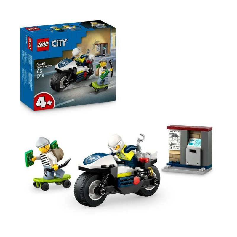 Découvrez le set LEGO® City 60455 avec une moto de police, un skateboard, un distributeur et des minifigurines. Parfait pour les enfants des 4 ans, ce jeu de construction stimule l'imagination et le jeu de rôle tout en développant des compétences essentielles.