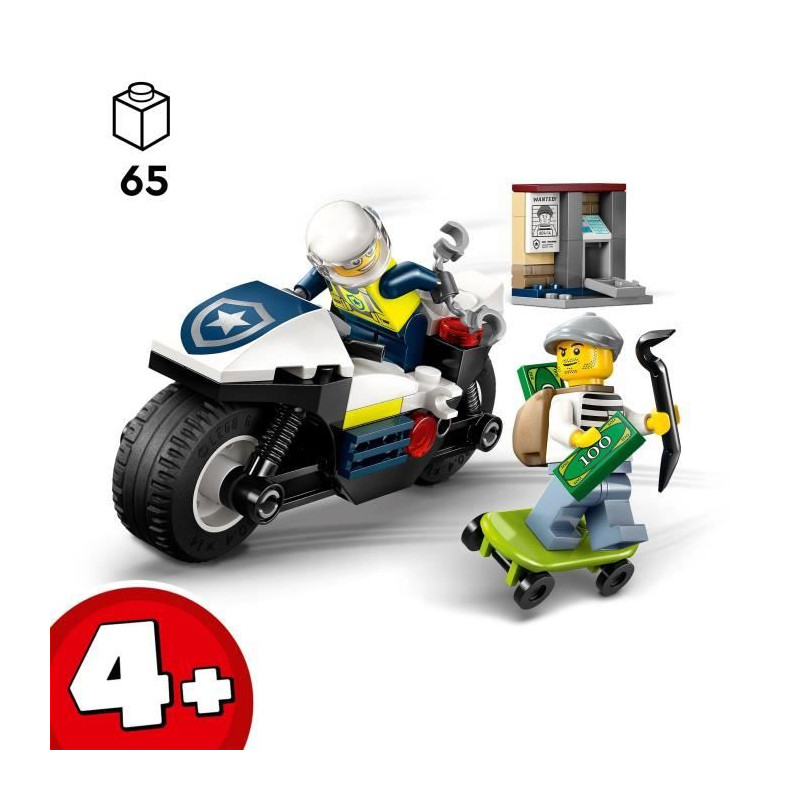 LEGO City 60455 La Course-Poursuite en Moto de Police - Jeu de construction des 4 ans