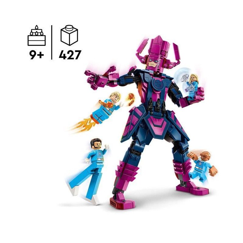 Revivez l'action du film avec le set LEGO® Les Quatre Fantastiques contre la figurine de Galactus. Ce jeu de construction de 427 pieces, adapté des 9 ans, inclut des minifigurines des héros et une figurine articulée de Galactus, offrant une expérience de jeu créative et immersive.