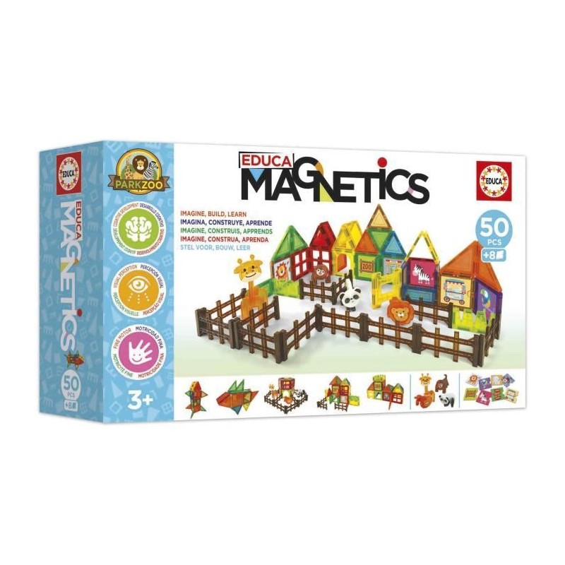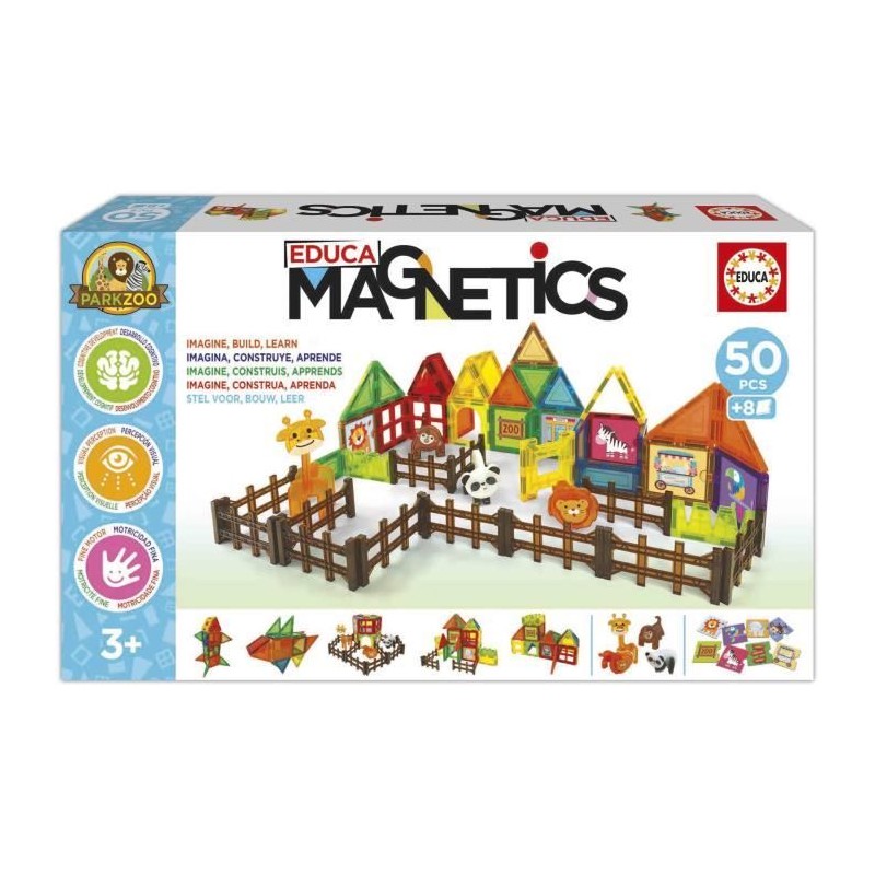 Magnetics Parc Zoo - Jeu de construction - EDUCA - 50 pieces magnétiques, 4 animaux, 8 cartes - Des 3 ans