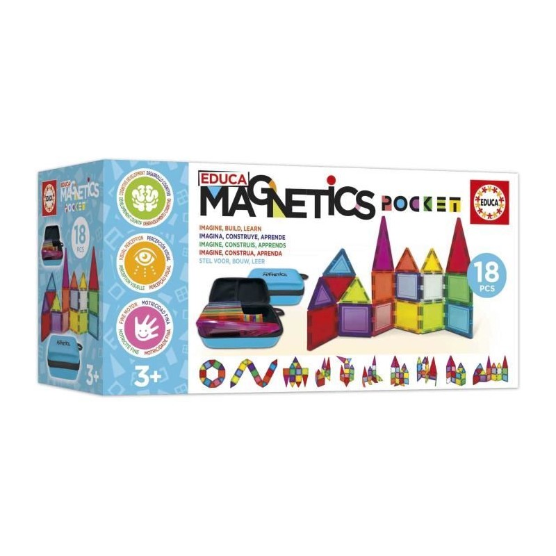 Magnetics Mallette - Jeu de construction - EDUCA - 18 blocs magnétiques, 2 animaux, 8 cartes - Des 3 ans