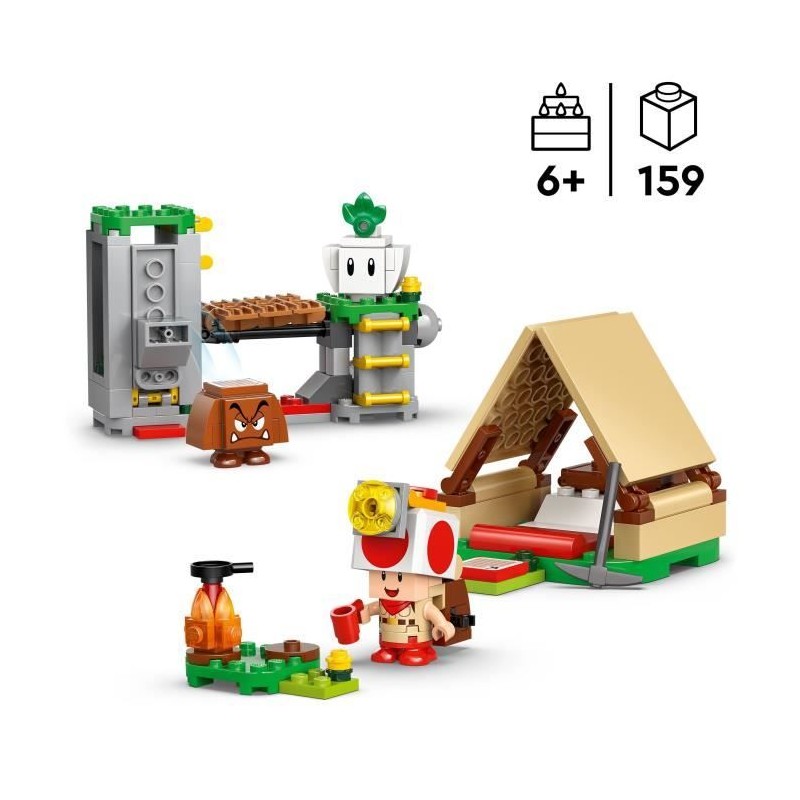 Découvrez le Campement du Capitaine Toad LEGO® Super Mario(TM) ! Ce jeu de construction interactif des 6 ans inclut 3 figurines et 159 pieces pour créer des aventures palpitantes. Aidez Toad a chercher des trésors, a faire tomber un pont et a renverser des ennemis. Stimulez l'imagination des enfants avec des défis amusants et des possibilités d'extension.