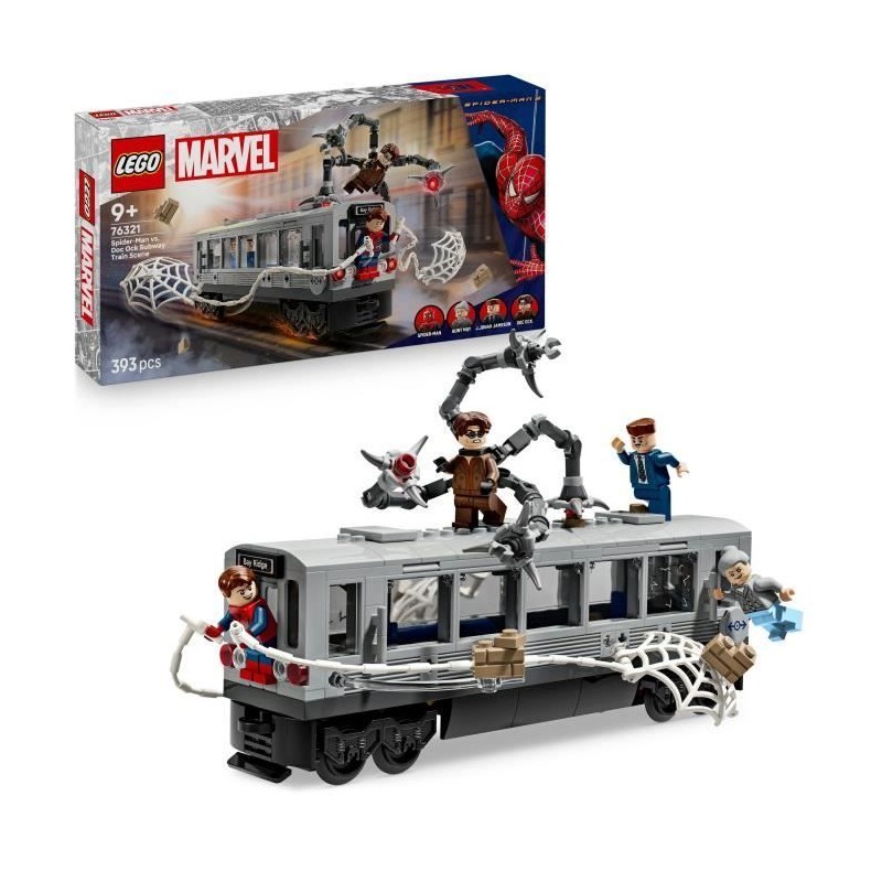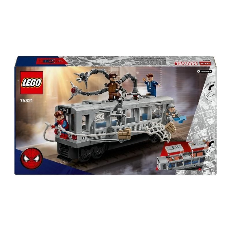 Offrez a votre enfant le set LEGO® | Marvel 76321, une scene d'action entre Spider-Man et Docteur Octopus dans un train. Avec 393 pieces, ce jouet de construction inclut des minifigurines et des aventures palpitantes. Idéal pour les fans de Marvel des 9 ans.